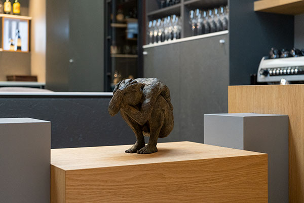 Bij het binnenkomen van het restaurant worden we in het Nederlands ontvangen. De van oorsprong Franstalige maître doet er alles aan ons in het Nederlands van dienst te zijn. De gerechten worden ook in het Nederlands aangeprezen. Gezien mijn Frans niet al te best is, vonden we dat absoluut een meerwaarde, al zou het uiteraard geen bezwaar zijn, moest dat niet het geval zijn. Het interieur is licht en luchtig met een halfopen keuken waar je de chef en zijn brigade aan het werk kan zien. De zaal biedt plaats aan 20 gasten. Bijzonder is het eiland waar je kan eten met exclusief uitzicht op de keuken. Het weer is niet al te best dus eten we binnen. Bij mooi weer kan dit ook op het terras aan de achterzijde van het gebouw. Mooie schilderijen geven een extra cachet aan de ruimte, alsook de planken vloeren en de perfect gedekte tafels.